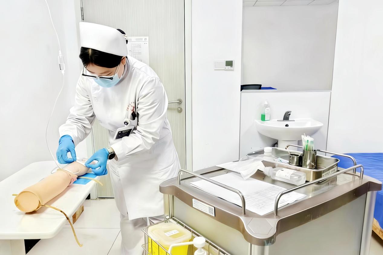本次考核秉持科学、严谨、公平公正原则,构建理论与实践结合的考评体系。理论考核紧扣护理“三基”核心,融入护士资格证考试高频考点,采用闭卷笔试形式,全程规范管理。此次考核既是对实习阶段学习成果的全面复盘,也为实习生后续备战护士资格考试搭建了实战演练平台。技能操作考核围绕心肺复苏(CPR)、静脉输液两项临床核心技能,评委严格遵照临床护理操作标准,从操作流程、无菌观念、人文关怀等方面逐项评分。实习生们精神饱满、操作娴熟,规范完成各项实操,展现出良好的临床实操能力与职业素养。